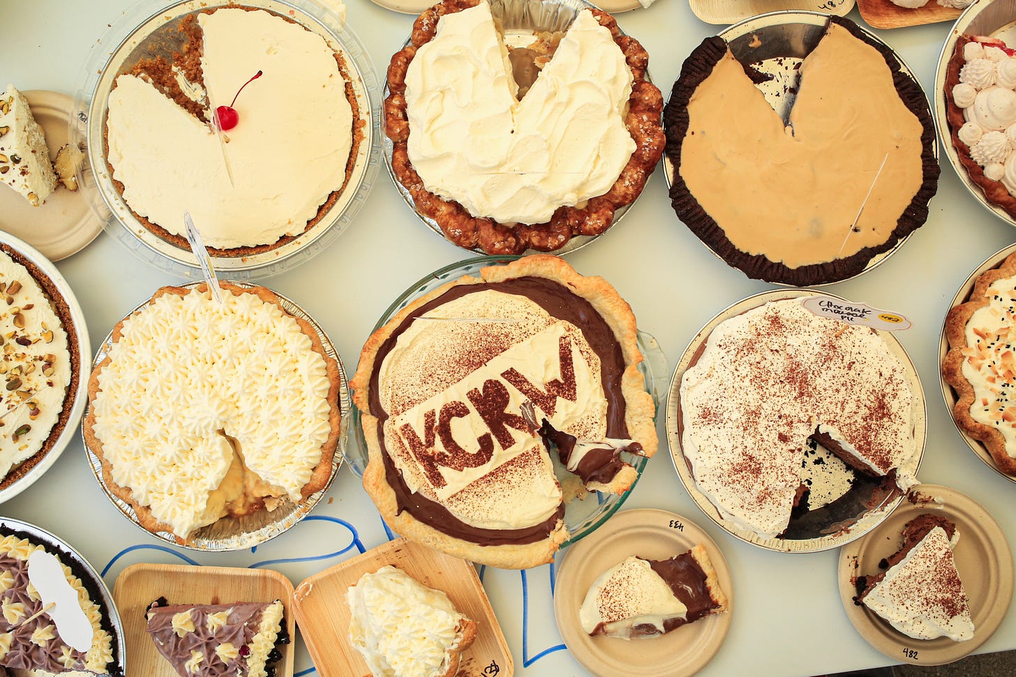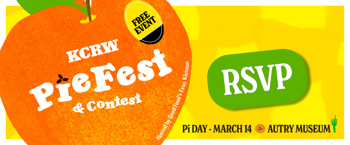 Do you want the origin story first or the deets? Yes, let’s get the details out of the way. The KCRW PieFest & Contest will return after a three-year hiatus on March 14th, Pi Day (of course!). Our new venue is The Autry. It’s a great institution with amazing exhibitions and a beautiful lawn that should help us create a perfect Pi(e) Day vibe. Pie is delicious, but it is also a vibe. Is that the only change from past years? No, it’s not.